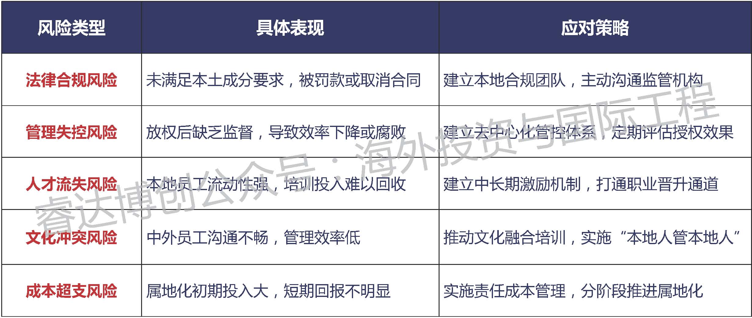 结合上述分析,我们将海外工程项目本土化面临的风险归纳为以下四类,并提出针对性解决方案:
